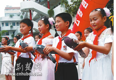 云夢(mèng)縣組織豐富多彩的慶“六一”兒童節(jié)活動(dòng)。圖為在該縣舉辦的“歌唱祖國(guó),歌頌和平,放飛心愿”為主題的校園文藝演唱會(huì)上,青少年學(xué)生放飛和平鴿的情景。