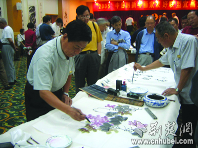 昨日,來自中、日、新、韓四國共26名書畫大家在游覽三峽后,紛紛揮毫潑墨,并與宜昌本土?xí)嫾疫M(jìn)行了交流。據(jù)了解,此次四國書畫家友好聯(lián)盟大型筆會活動,是由宜昌市政協(xié)、宜昌點(diǎn)軍區(qū)政府和宜昌環(huán)中房地產(chǎn)開發(fā)有限公司、宜昌環(huán)中旅游開發(fā)有限公司共同舉辦的。荊楚網(wǎng)楚天都市報(bào)記者梅曉蕓攝