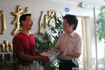 荊楚網(wǎng)副總編輯黃斌給武漢胡先生頒獎(jiǎng)