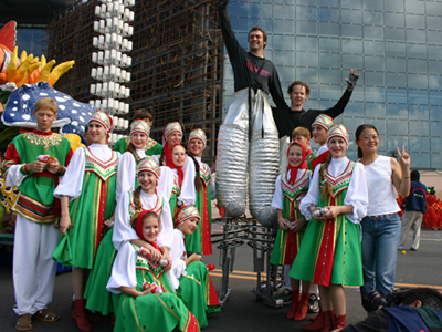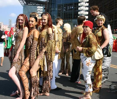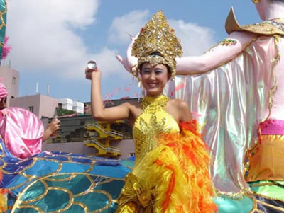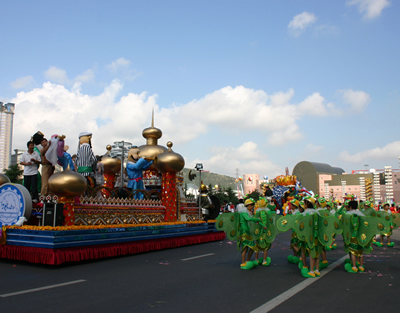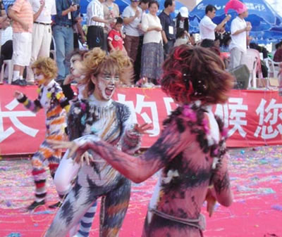 今天上午在新海廣場舉行的第六屆大連狂歡節(jié),更是使歡樂的海洋里掀起了歡樂的海潮。來自國內(nèi)外的24支狂歡巡游隊伍,以花團錦簇的民族服裝和極度夸張的藝術(shù)手法,演繹了航天、花神、特洛伊木馬、梁山伯與祝英臺、孔雀仙子、海底動物、蝴蝶服飾、阿凡提、醉酒、美人魚、回娘家、貓友、豪華游覽馬車、日月潭傳說、堂吉訶德、木偶奇遇、狐假虎威、寶蓮燈、海娃與王子、小櫻丸子、尼爾斯騎鵝記、阿里巴巴、輪滑表演等國內(nèi)外著名童話,電影故事等。最為耀眼的是以音樂劇《貓》的扮相出場的表演隊伍,他們獨特的表演和造型贏得了在場觀眾最多的歡呼聲。狂歡的服裝藝術(shù)巡游,吸引了數(shù)萬國內(nèi)外游客和當(dāng)?shù)孛癖姷挠^賞。