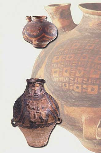 彩陶人像陶壺:水器(下,高34厘米)[相關(guān)鏈接]:20世紀(jì)中國百項(xiàng)考古大發(fā)現(xiàn)(1-20)21、大溪遺址(圖)22、城頭山遺址(圖)23、屈家?guī)X遺址(圖)24、崧澤遺址(圖)25、馬家窯遺址(圖)26、柳灣墓地(圖)27、牛河梁遺址(圖)28、城子崖遺址(圖)29、良渚文化遺址群(圖)30、石家河遺址群(圖)31、陶寺遺址(圖) 32、王城崗遺址(圖)33、齊家坪遺址(圖)34、卡若遺址(圖)35、石峽遺址(圖) 36、東灣仔北遺址(圖)37、圓山遺址(圖)38、二里頭遺址(圖)39、東下馮遺址(圖)40、夏家店遺址(圖)