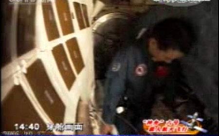 人民網(wǎng) 北京航天飛行控制中心10月13日訊 前方報道組報道:今天下午,神六首次傳回軌道艙畫面。