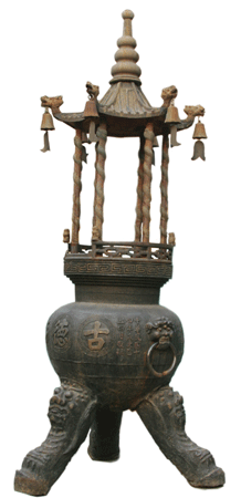 王殿和圓通寶殿之間,安放著一個(gè)鑄造于民國初年的寶鼎,這是1997年時(shí),寺內(nèi)的師傅們從寺院的地下挖出來的。時(shí)光磨洗,老香爐和圓通寶殿的墻壁一樣斑駁,不過“古德寺”以及“中華民國十四年歲”等字樣依然清晰。