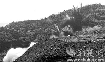 昨日上午10時30分,在一聲巨響中,宜昌市點(diǎn)軍區(qū)橋邊鎮(zhèn)黃家棚村的一座山頭劇烈地?fù)u晃了幾下,整座山土石松動,這是宜萬鐵路完成的一起大型山體爆破施工項(xiàng)目。