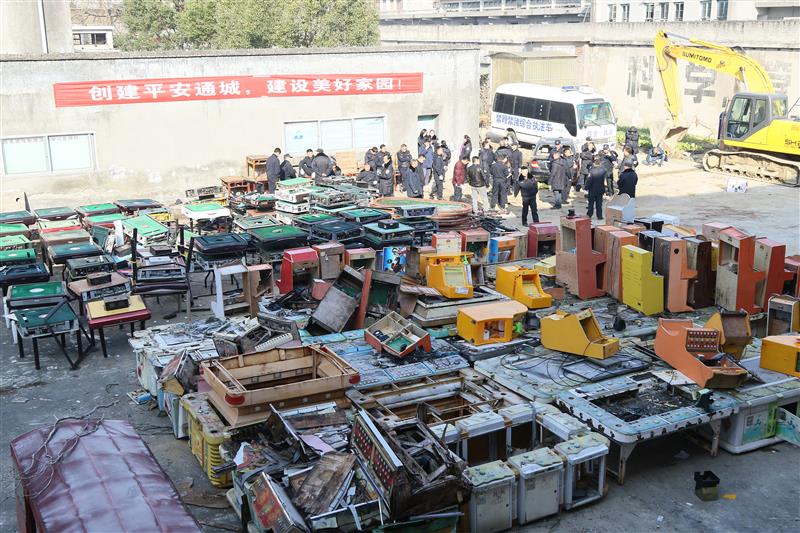 湖北日報訊(記者陳嶼、通訊員劉建平、吳忠勇)12月20日上午10時許,隨著指揮人員一聲號令,從通城各鄉(xiāng)鎮(zhèn)收繳的152臺涉賭電子游戲機、186臺麻將機被集中銷毀。