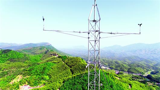 湖北日報訊 圖為:咸安區(qū)白云山風(fēng)電項目測風(fēng)塔。(湖北日報全媒記者 陳勇 攝)