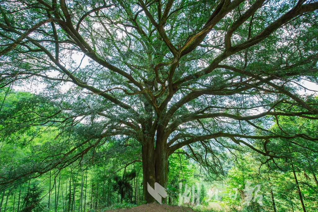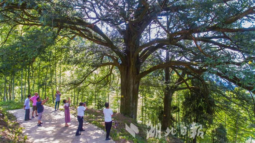 湖北日?qǐng)?bào)訊(記者 陳勇 通訊員汪佳、黎志遠(yuǎn))7月16日,在崇陽(yáng)縣港口鄉(xiāng)大東港村,兩棵古香榧樹歷經(jīng)千年仍枝繁葉茂、碩果累累,令游客驚嘆不已。這棵雌性香榧樹高25米,樹冠面積約有650平方米,胸圍4.9米,估測(cè)樹齡在980年至1200年之間。香榧,紅豆杉科,中國(guó)原產(chǎn)樹種,是世界上稀有的經(jīng)濟(jì)樹種。崇陽(yáng)縣林業(yè)部門在幕阜山南坡發(fā)現(xiàn)這兩株古香榧樹,認(rèn)為有很高的科研和經(jīng)濟(jì)價(jià)值,列入一級(jí)保護(hù)的古樹名單。