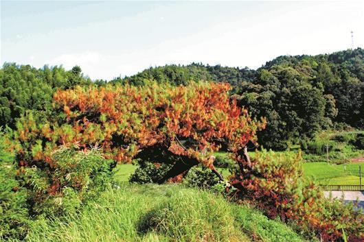 楚天都市報(bào)記者看到,樹(shù)身上有許多蟲(chóng)蛀孔,而樹(shù)枝上的針葉幾乎全都變枯黃。枝干上有“嘎吱嘎吱”聲音像從四面八方傳來(lái),更像每個(gè)枝上都有,樹(shù)上不時(shí)落下蟲(chóng)蛀咬的粉末,讓站立樹(shù)下的人不敢仰望。村民們說(shuō),古樹(shù)患了病,樹(shù)干里長(zhǎng)了壞蟲(chóng)子,每天不停地啃咬,造成樹(shù)葉枯死。