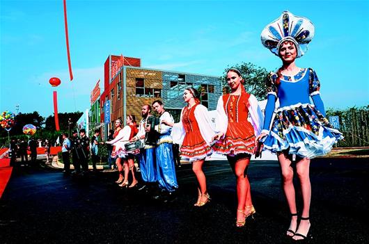 當(dāng)日,經(jīng)過(guò)一年多時(shí)間建設(shè)的“萬(wàn)畝茶園·俄羅斯方塊小鎮(zhèn)”揭開(kāi)面紗。茶園入口,彩球飛揚(yáng)、人流如織,俄羅斯少女翩翩起舞。走入茶園,齊腰的茶樹(shù)漫山遍野、油綠發(fā)亮,異域風(fēng)情的商業(yè)街、喀秋莎會(huì)客廳、四季茶溪花海令人眼前一亮。萬(wàn)畝茶園原是羊樓洞茶場(chǎng)砂子嶺分場(chǎng)所在地,連片的茶園超過(guò)萬(wàn)畝,主要用于制作青磚茶,是赤壁聞名的旅游地標(biāo)之一。重新規(guī)劃建設(shè)的萬(wàn)畝茶園,預(yù)計(jì)總投資5.4億元,擺脫原有單一茶業(yè)種植,瞄準(zhǔn)建設(shè)全球首家茶文化俄羅斯風(fēng)情主題公園。