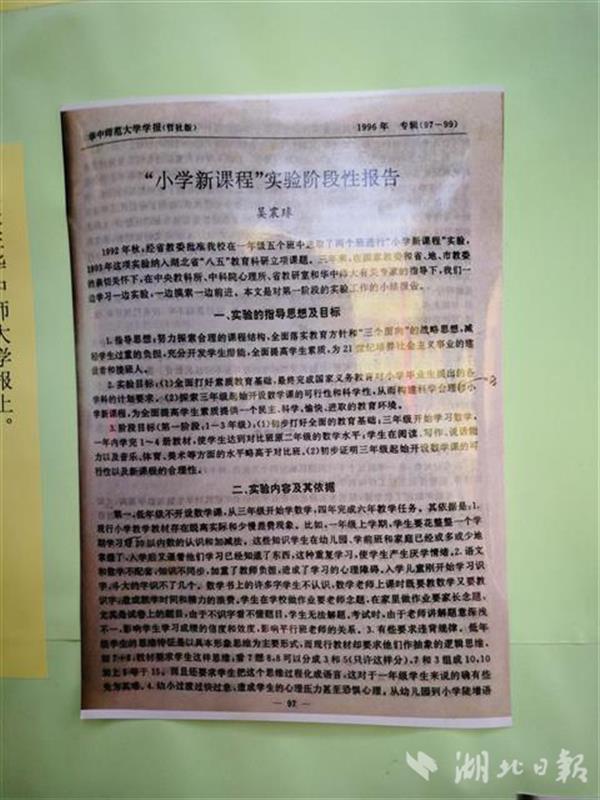 1992年秋,時(shí)任赤壁市實(shí)驗(yàn)小學(xué)校長(zhǎng)的吳震球從一年級(jí)五個(gè)班中選取兩個(gè)班進(jìn)行“小學(xué)新課程”實(shí)驗(yàn),從三年級(jí)開始學(xué)數(shù)學(xué),此項(xiàng)實(shí)驗(yàn)還曾納入我省“八五”教育科研立項(xiàng)課題。1998年小學(xué)畢業(yè)考試,實(shí)驗(yàn)班學(xué)生數(shù)學(xué)平均分高于普通班3-5分。但由于人事變動(dòng),當(dāng)年的實(shí)驗(yàn)并未結(jié)題,此項(xiàng)實(shí)驗(yàn)也無(wú)疾而終。