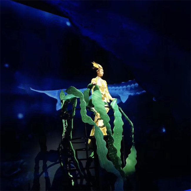 《浮出水面》講述了未來人類因一次地震而沉入海底生活,小男孩“歡歡”一家在未來世界認(rèn)識(shí)到環(huán)境污染的嚴(yán)重,在中華鱘“奔奔”的指引下浮出水面,最后重回陸地建設(shè)家園的故事,劇情將大量音樂舞蹈與科學(xué)知識(shí)結(jié)合,涵蓋垃圾分類、人體急救、阿基米德原理、火箭噴射等多種科學(xué)知識(shí)。整場(chǎng)演出亮點(diǎn)紛呈。