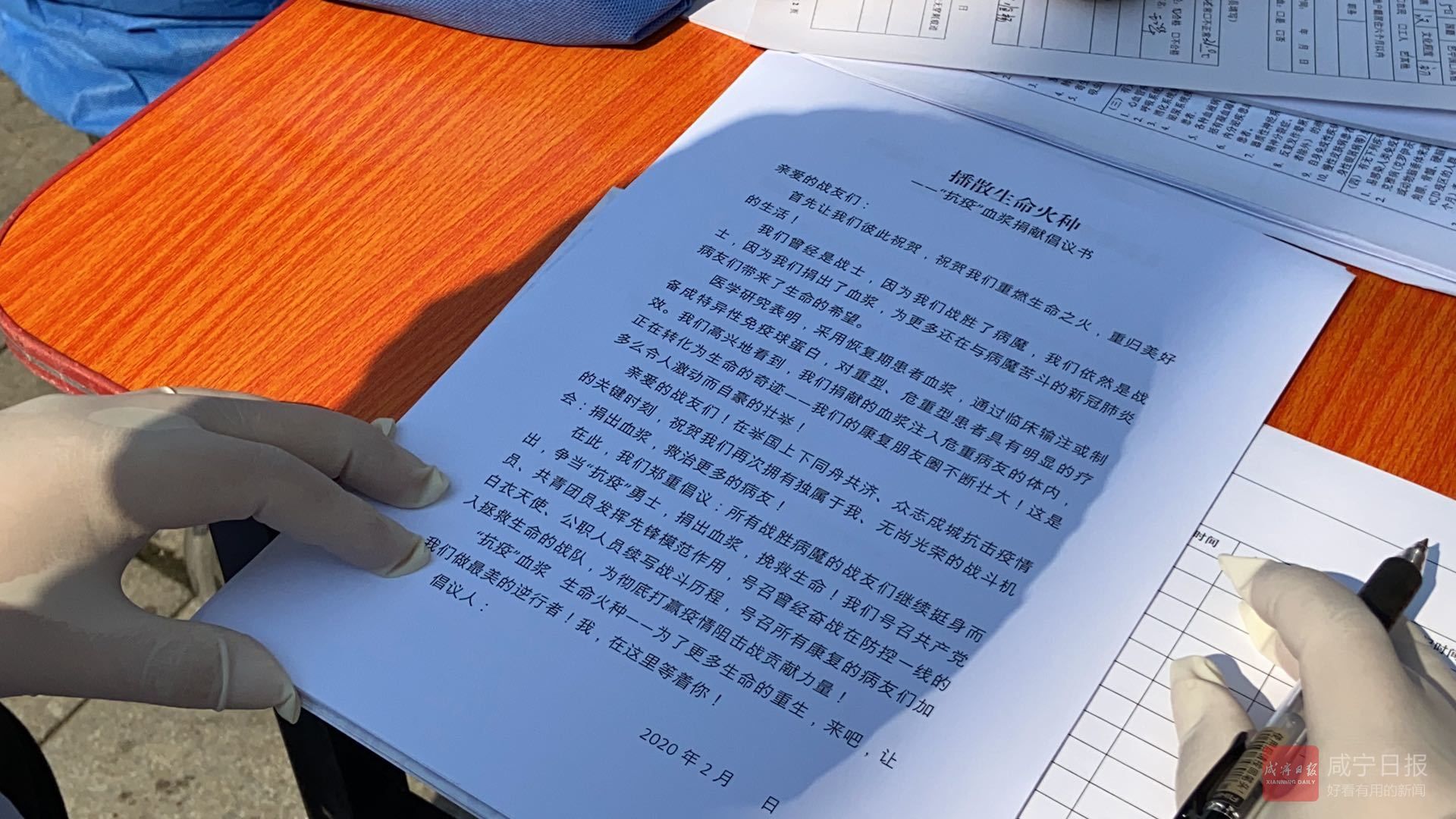 當(dāng)天,治愈患者程某在經(jīng)過CT、核酸檢測、體檢征詢等一系列操作后,在咸寧市中心血站流動(dòng)采血車上接受了血漿采集,共400毫升。