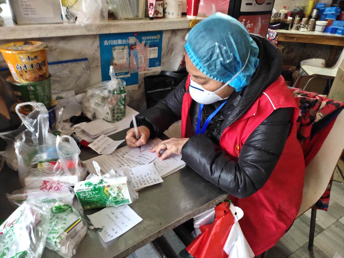 李少華是第一次當(dāng)義工。他寫下請(qǐng)戰(zhàn)書、入黨申請(qǐng)書。他負(fù)責(zé)為全小區(qū)居民買藥,總是不厭其煩和居民溝通,確保準(zhǔn)確無(wú)誤。他還積極參與防疫宣傳、排查、居民生活物資配送。