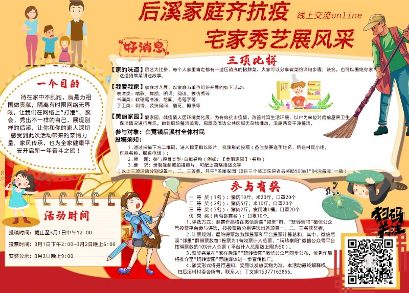因?yàn)?,該村正在舉辦“后溪家庭齊抗疫 宅家秀藝展風(fēng)采”活動(dòng)!