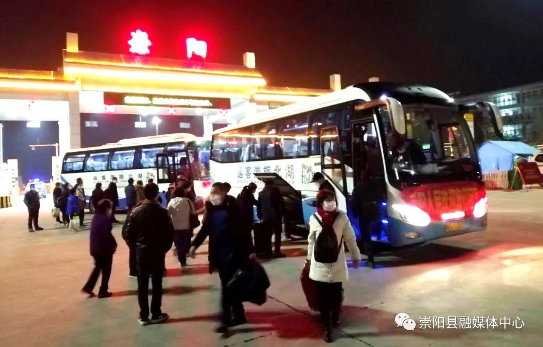 當(dāng)晚,載著32名返崗員工的2臺(tái)大巴從湖南岳陽東站起程,21點(diǎn)10分順利返回崇陽,這些返崗員工在采取相應(yīng)防疫措施后將陸續(xù)走上復(fù)工崗位。