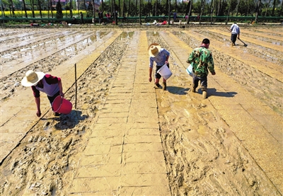 3月18日,咸安區(qū)俊敏種植專業(yè)合作社的社員們正忙著鋪秧盤、撒谷種。日前隨著氣溫回升,在做好新冠肺炎疫情防控的基礎上,咸安區(qū)搶抓農時開展早稻春播生產,組織當?shù)厮膫€專業(yè)合作社搭建中型水稻集中育秧基地2個、小型水稻集中育秧基地2個,通過規(guī)?;藴驶杏硖岣叻N植效率,為村民提供水稻集中育秧和機械化插秧一條龍托管服務,助力當?shù)剞r民早稻春播。