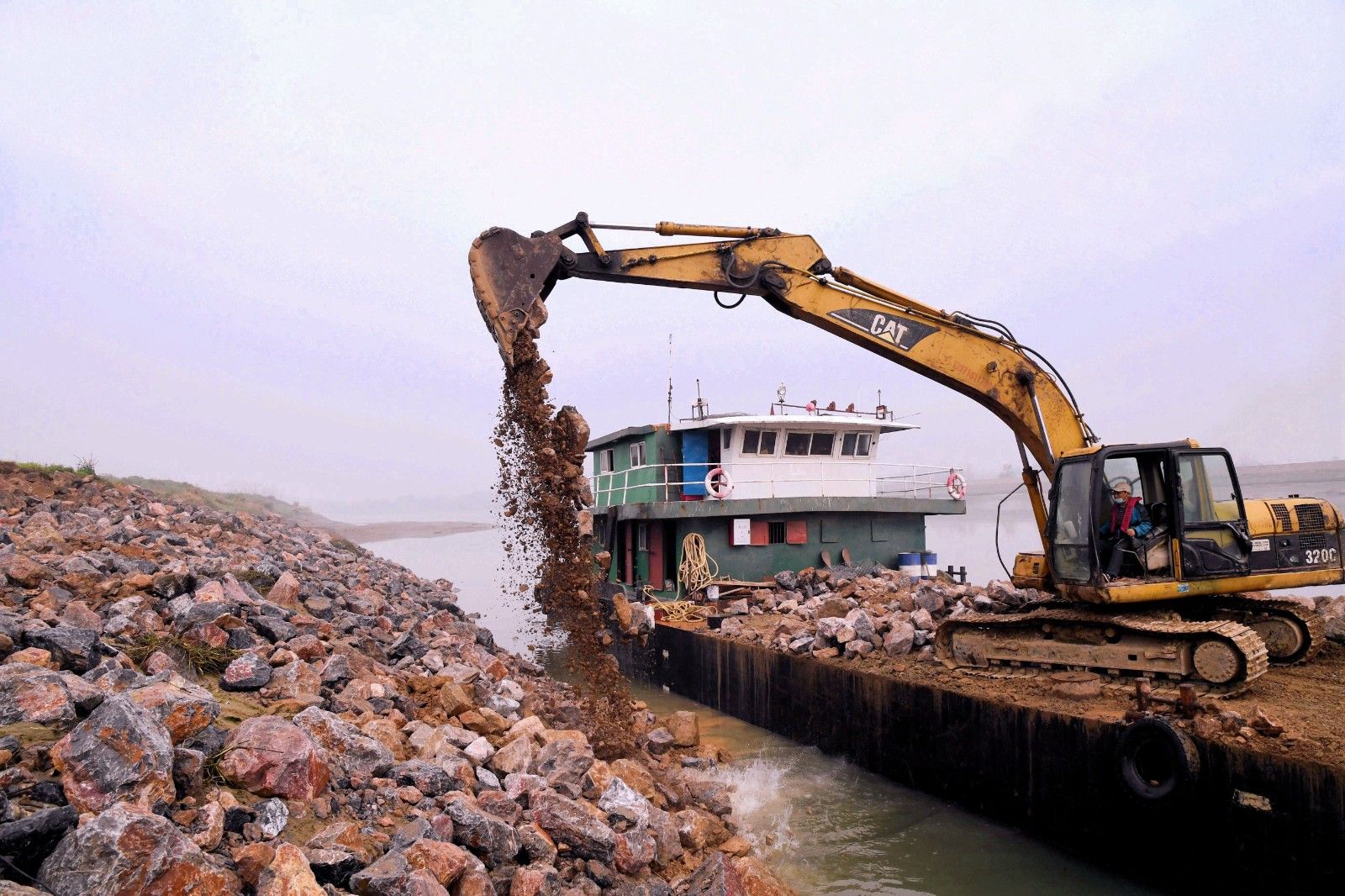 陸水河四清垸大堤全長450米,多年來的洪水侵襲致使河床下沉,堤岸崩裂。對此,赤壁市制訂了堤岸拋石護腳整治規(guī)劃。隨著疫情逐漸好轉(zhuǎn),赤壁市于3月18日啟動工程維修計劃,投入大量人力物力。隨著挖掘機鐵臂的揮舞,一塊塊巨石墜落在河岸,為大堤的防洪能力再加一道保險。