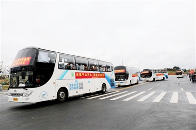 3月30日上午9時30分,在通山縣文體中心,12輛 “點對點、一站式”輸送返“粵”務(wù)工人員的愛心大巴專車,載著320名務(wù)工人員一路向南,前往深圳等地返崗復(fù)工,這是目前咸寧市人數(shù)最多的一次“點對點”輸送。