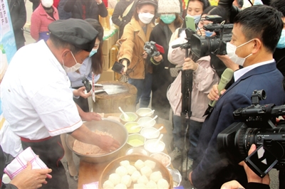 4月3日,在嘉魚特產(chǎn)贈送云南醫(yī)療隊暨嘉魚農(nóng)產(chǎn)品原產(chǎn)地直播活動現(xiàn)場,嘉安集團(tuán)工人制作簰洲圓子的過程受到熱烈追捧。簰洲圓子現(xiàn)已成為展示嘉魚魚文化的一張文化名片,成為傳承文化遺產(chǎn)、發(fā)展文化產(chǎn)業(yè)、建設(shè)美麗鄉(xiāng)村的一個文化品牌。此外,簰洲圓子還登上了央視紀(jì)錄片《舌尖上的中國》,憑著其傳統(tǒng)的技藝及綠色健康的特點(diǎn),享譽(yù)神州大地。