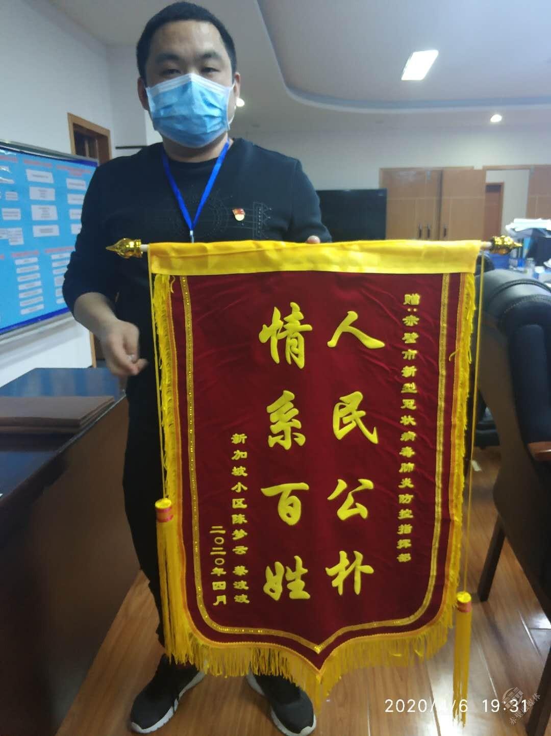 4月6日,一面印有“人民公仆 情系百姓”字樣的錦旗送到了赤壁市疫情防控指揮部衛(wèi)健局人事股科員胡明浩手中。