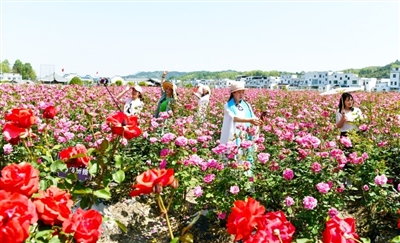 通城縣麥市鎮(zhèn)冷段村引進資金,在200余畝荒地上種植月季花。20多個品種的月季正值盛花期,每天吸引眾多游客游玩賞花,當地安排30多位農民配套服務,在家門口增收。