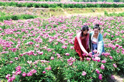 5月初,地處幕阜山綠色產(chǎn)業(yè)帶的銅鐘鄉(xiāng)銅鐘村丫吉中藥材種植基地,150多畝芍藥花怒放吸引游人前來(lái)看花賞景。