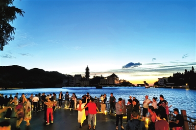 8月16日,記者在九宮山風景區(qū)看到,云中湖畔游客如潮。各大賓館、酒店客房一鋪難求,各大餐館生意紅火。據(jù)了解,在“與愛同行,惠游湖北,樂享咸寧”活動的推動下,僅8月9日到16日,九宮山接待游客突破4.4萬人次,同比增長250%,創(chuàng)歷史最高紀錄。