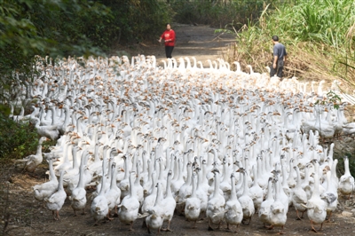 “3500多只鵝,每天光吃糧就得花1700多塊錢,5個(gè)多月來,我們已吃去了16萬多元,真的是‘被吃窮了’!”10月10日,崇陽(yáng)縣沙坪鎮(zhèn)廟鋪村4組的埂場(chǎng)山,山谷里回蕩著群鵝嬉戲的“嘎嘎”聲,55歲的養(yǎng)鵝人劉金漢和他的妻子張金書卻滿是愁言。