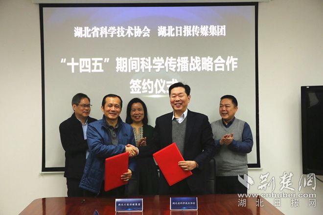 荊楚網(wǎng)客戶端—荊楚網(wǎng)消息(記者謝頤、陳雅俊 通訊員安明山)普及科學知識,倡導科學方法,傳播科學思想,弘揚科學精神。1月27日,湖北省科學技術協(xié)會與湖北日報傳媒集團簽訂“十四五”期間科學傳播戰(zhàn)略合作協(xié)議。協(xié)議明確:雙方聚焦主責主業(yè),充分發(fā)揮各自優(yōu)勢,推進“十四五”期間全面深入合作,增強科學傳播的影響力和覆蓋面,為實現(xiàn)湖北省2025年公民科學素質建設目標提供有力支撐。