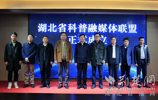 與會(huì)領(lǐng)導(dǎo)嘉賓為“湖北省科普融媒體聯(lián)盟”揭牌。