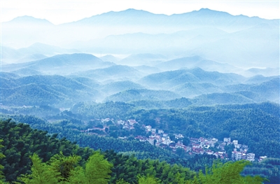 順著茶園旁的道路走十分鐘,就來到了西山下村。村子四周被茶園、林木、河流、高山所包圍著,村內(nèi)樹木青翠,灰墻黛瓦,新舊建筑坐落有致,如一幅隱蔽、靜謐的“山水畫”。