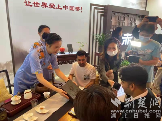 活動期間,赤壁青磚茶亮相論壇,成為現(xiàn)場焦點,吸引了眾多嘉賓駐足、品嘗、合影。在主論壇所在地的紫荊廳茶歇區(qū),記者看到,茶藝師精心準(zhǔn)備了赤壁青磚茶,供嘉賓品嘗,觀看茶藝表演,感受湖北茶的獨特魅力。