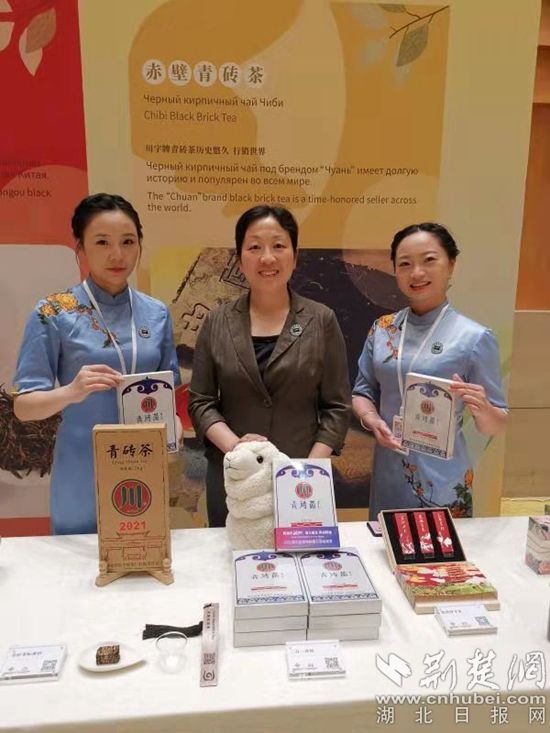 在主論壇的湖北省茶業(yè)集團(tuán)股份有限公司展位,帶來了旗下湖北省趙李橋茶廠有限責(zé)任公司生產(chǎn)的川字牌二合一型青磚茶。該款產(chǎn)品去年作為捐贈物資之一,被湖北省人民政府回贈給蒙古國?!把騺聿柰敝忻捎颜x傳佳話。