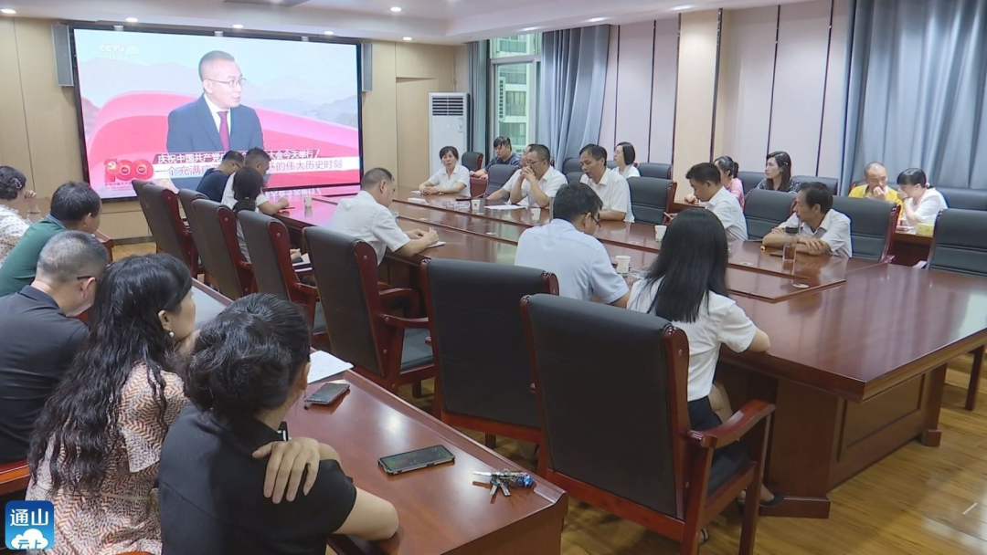 在縣交通運(yùn)輸局9樓會議室,全體黨員干部正在集體收看慶祝中國共產(chǎn)黨成立100周年大會電視直播。直播開始后,大家全神貫注地盯著屏幕,生怕錯過一個細(xì)節(jié)。