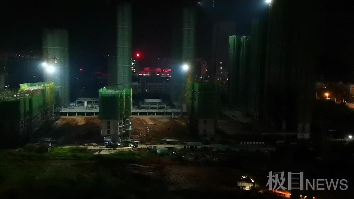“你看,這是我在凌晨一點(diǎn)拍的視頻,工地依舊燈火通明,施工噪聲非常大!”在李女士的手機(jī)中,極目新聞?dòng)浾呖吹剿?月30日晚0:58分用手機(jī)拍攝的視頻,視頻中顯示,該建筑工地距李女士居住小區(qū)僅一墻之隔,多輛工程車、挖機(jī)在不間斷施工作業(yè),噪音十分明顯。