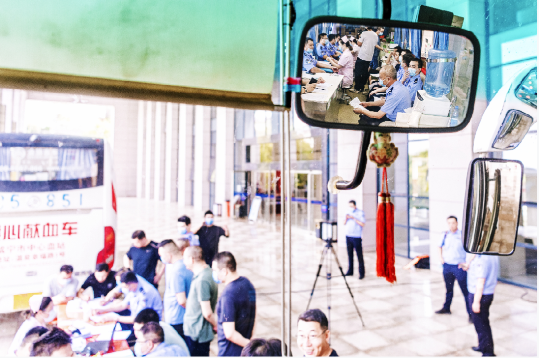 一時(shí)間,從局黨委班子成員身先示范,到“白襯衣”一馬當(dāng)先,再到“藏青藍(lán)”接踵而至。不分男女,不論老幼,歷時(shí)7小時(shí)的獻(xiàn)血活動(dòng),不斷有民警持續(xù)加入。有的剛從護(hù)校崗位趕回,有的從交通高峰崗趕回,有的篤信自己過(guò)硬的身體素質(zhì)執(zhí)意多獻(xiàn)一些……