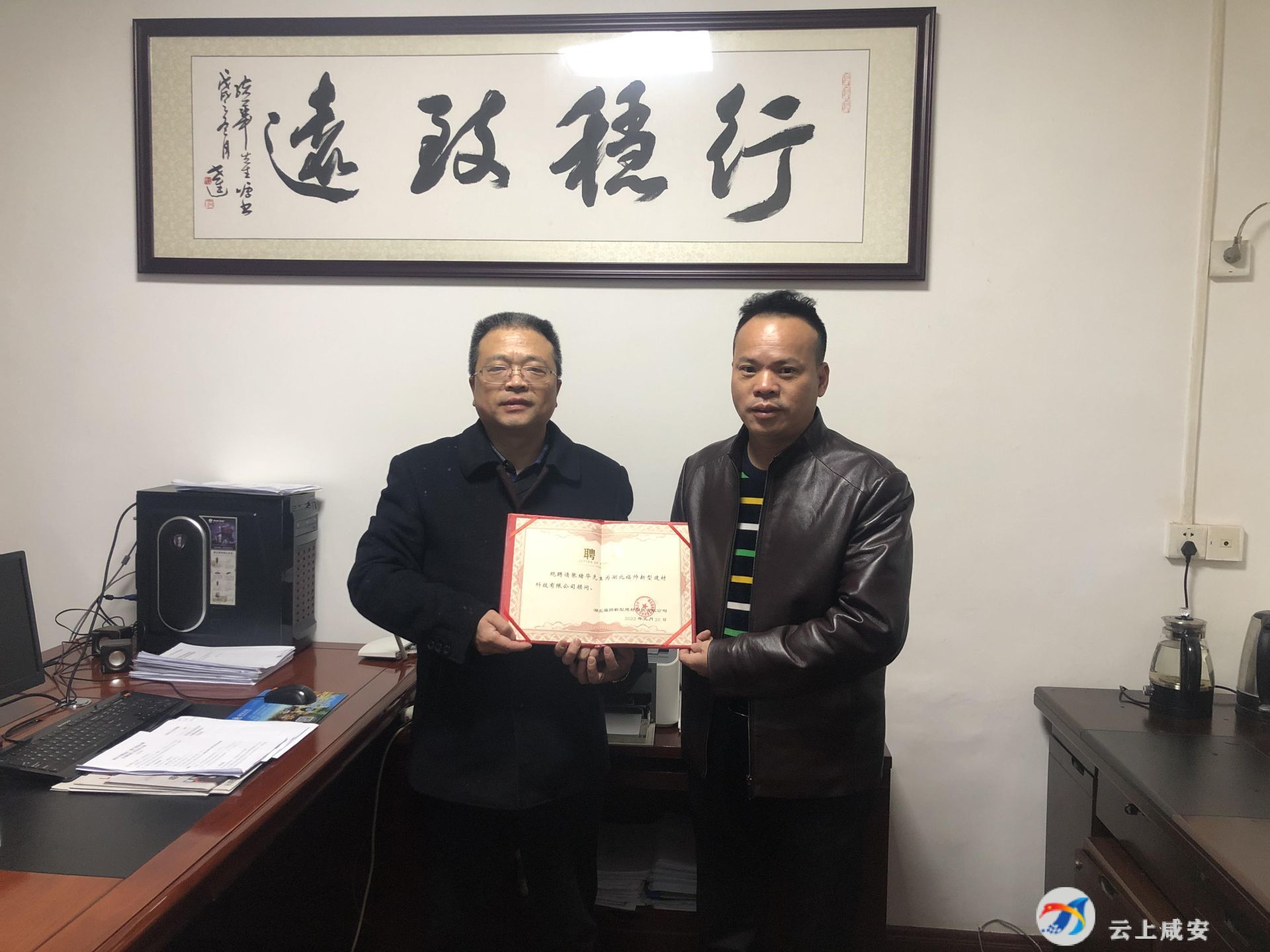 云上咸安報(bào)道(融媒體記者 劉正杰 李宇 特約記者 李星)日前,湖北福帥新型建材科技有限公司董事長(zhǎng)吳選勤帶著公司的聘任證書(shū),來(lái)到區(qū)科經(jīng)局,聘請(qǐng)?jiān)摼志珠L(zhǎng)張緒華為公司顧問(wèn)。這張沒(méi)有報(bào)酬的聘書(shū)背后,是一份沉甸甸的責(zé)任,是科經(jīng)局有呼必應(yīng)、應(yīng)必有果的“店小二”精神,是區(qū)委、區(qū)政府不遺余力持續(xù)優(yōu)化營(yíng)商環(huán)境的結(jié)果。