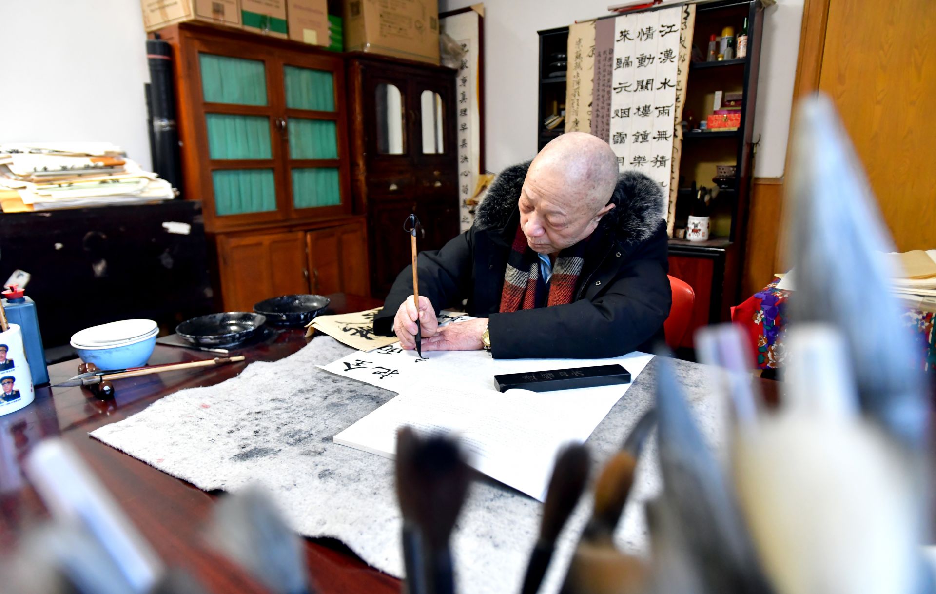 2月10日下午,筆架山街的一棟老房子里,一位老人正伏案閱讀。