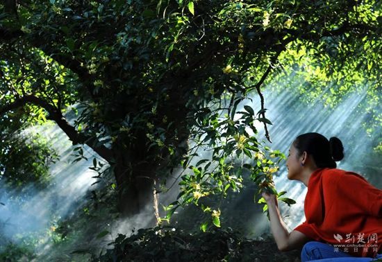 “有風(fēng)香十里,無風(fēng)十里香?!毕愠菬o處不飛花,幽香一縷醉萬家,群芳斗艷爭春色,唯我獨(dú)鐘桂花茶。
