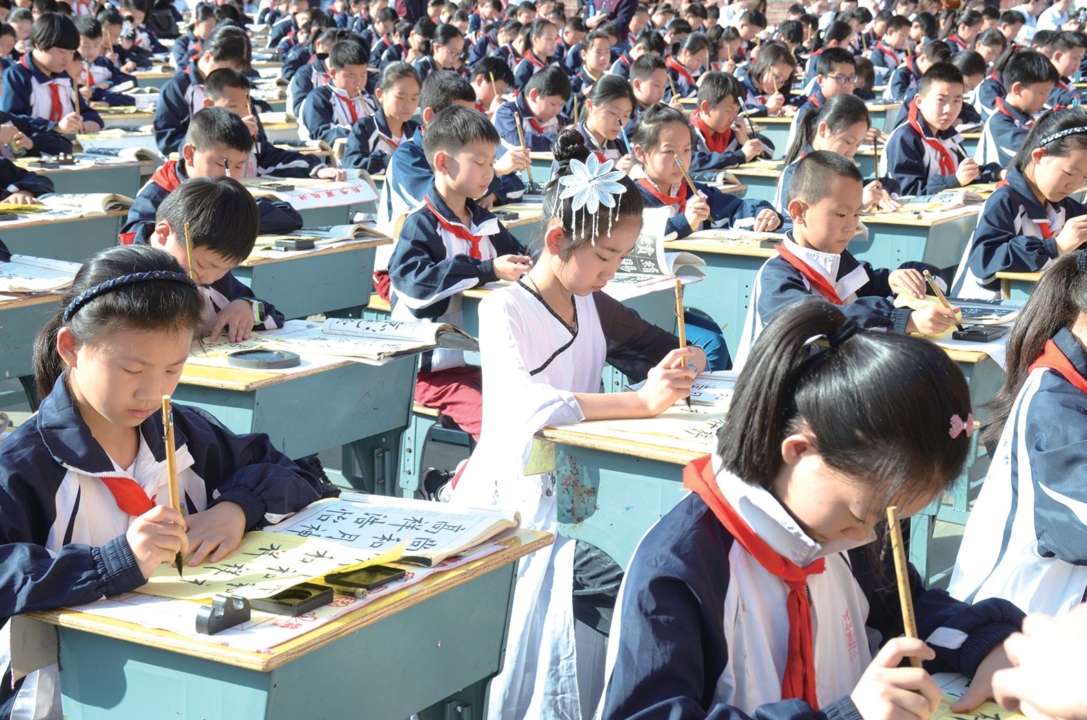 書寫是一個循序漸進的過程,在孩子小學階段有意識地培養(yǎng),讓孩子養(yǎng)成良好的書寫習慣,其將會受益一生?!拔覀儗W校每天堅持中午練20分鐘書法,孩子們學習書法的第一個內容,就是坐姿訓練?!睎|風52小學校長龔明說。