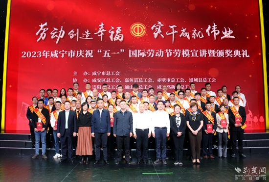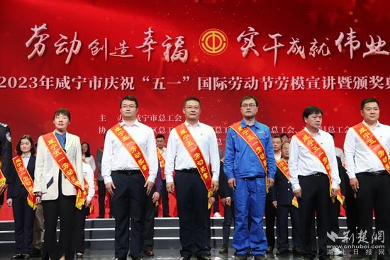 李志強(左三)榮獲咸寧五一勞動獎?wù)?。黃錚 攝