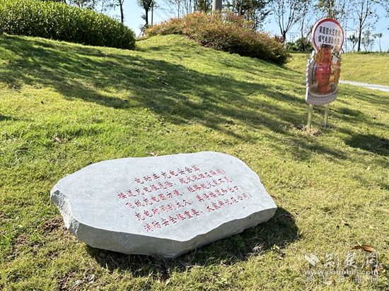 走進公園,園內(nèi)“消防口袋公園”標識牌醒目奪彩,沿路兩邊設(shè)置了匠心雕刻的消防常識石書、119消防座椅、消防器材石器以及花草叢中的宣傳提示牌,都不斷提醒每一位過往的群眾關(guān)注消防安全。公園里的游樂設(shè)施以及憨態(tài)可掬的消防員卡通雕塑也吸引了不少家長和孩子前來游玩和拍照打卡。“小朋友都喜歡過來,玩耍過程中接觸了消防安全知識,大人也跟著學?!奔易“倩ǘ诘氖忻駝⑴啃Φ?。