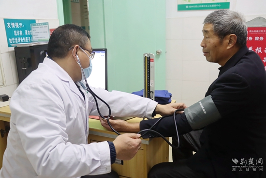 12月9日,晨光熹微,郭懷德來(lái)到鄂州市西山街道社區(qū)衛(wèi)生服務(wù)中心早早忙開了。他數(shù)次起身想去倒杯水,卻每每被前來(lái)就診的患者絆住腳步,直到大堂前來(lái)就診的人逐漸散去,郭懷德這才喝上一口水。
