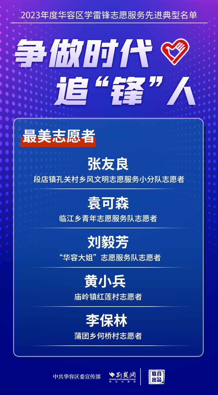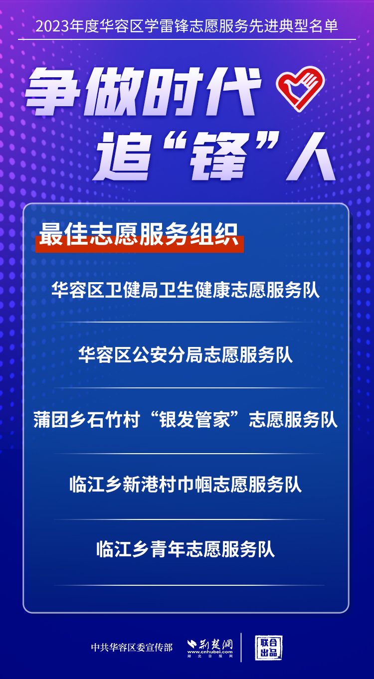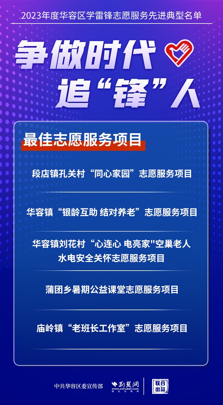 荊楚網(wǎng)(湖北日報(bào)網(wǎng))訊(記者王焱堯 通訊員劉佳源)最美志愿者、最佳志愿服務(wù)組織、最佳志愿服務(wù)項(xiàng)目、最美志愿家庭……3月5日,武漢新城展示中心,鄂州市華容區(qū)公布2023年度學(xué)雷鋒志愿服務(wù)先進(jìn)典型名單。