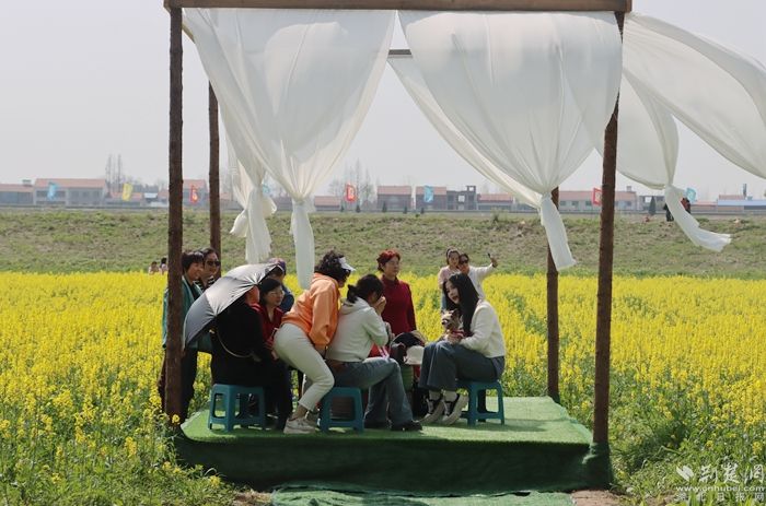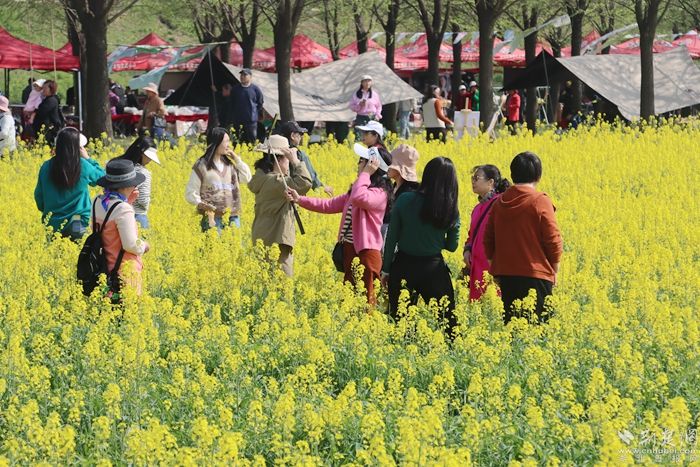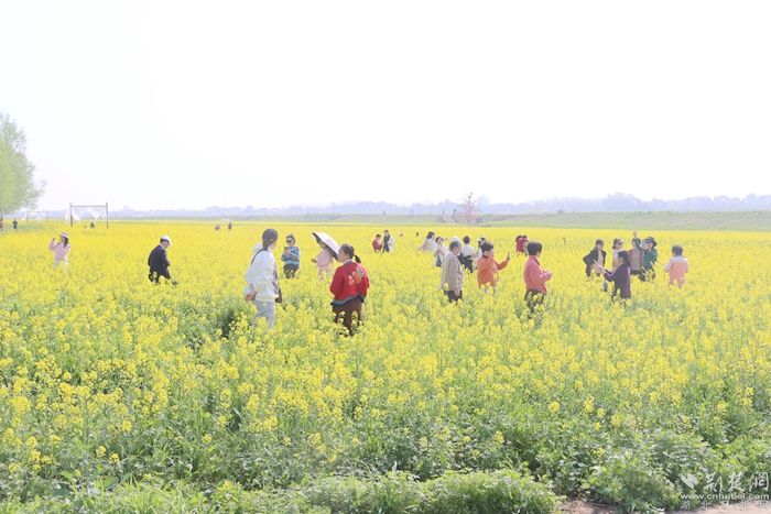 黃澄澄的油菜花田如金色海洋般廣袤無垠,春風拂過,花浪起伏,散發(fā)出令人陶醉的清新香氣。游客們紛紛踏入這片花海,感受春天的氣息,品味鄉(xiāng)土的韻味。