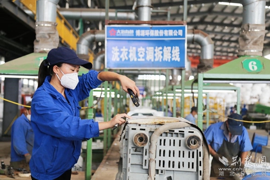 劉國(guó)平介紹,今年1至7月份,包括電視、冰箱、洗衣機(jī)、空調(diào)和電腦在內(nèi)的“四機(jī)一腦”共拆解57.85萬套,廢舊汽車回收拆解509臺(tái),小家電拆解6283噸。去年,企業(yè)拆解舊家電超過100萬臺(tái),產(chǎn)出金屬銅3000噸,“相當(dāng)于中色大冶的第五座礦山”。