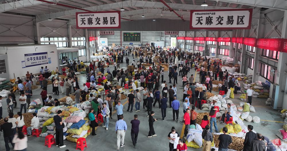 2023年10月15日,大別山道地藥材產(chǎn)業(yè)園交易市場在九資河鎮(zhèn)鳴鑼開市,當(dāng)日成交額突破2500萬元,吸引了2000多名本地藥農(nóng)進(jìn)場售賣,400多名客商從陜西、云南、安徽等地慕名而來。