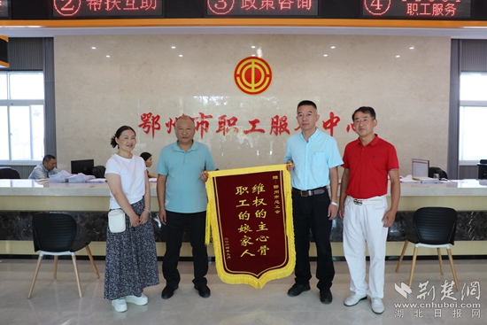 荊楚網(wǎng)(湖北日報(bào)網(wǎng))訊(通訊員 魏君)9月25日,在鄂州市職工服務(wù)中心大廳,職工陳女士將一面印有“維權(quán)的主心骨 職工的娘家人”的錦旗親手交到高原維權(quán)工作室負(fù)責(zé)人手中,向工會組織的援助表達(dá)誠摯的謝意。