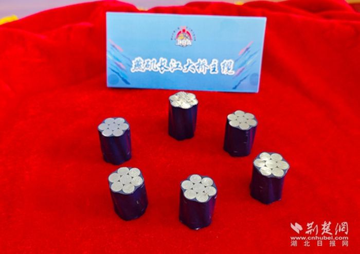 燕磯長江大橋是世界最大跨徑四主纜懸索橋,也是世界首座不同垂度四主纜雙層鋼桁梁懸索橋。此次大賽獎(jiǎng)杯將運(yùn)用大橋的6根主纜纜芯,它是2100兆帕的高強(qiáng)鋼索,希望參賽隊(duì)員們能夠抗住比賽的高壓,展現(xiàn)出永不放棄的拼搏精神和銳意進(jìn)取的昂揚(yáng)風(fēng)采。