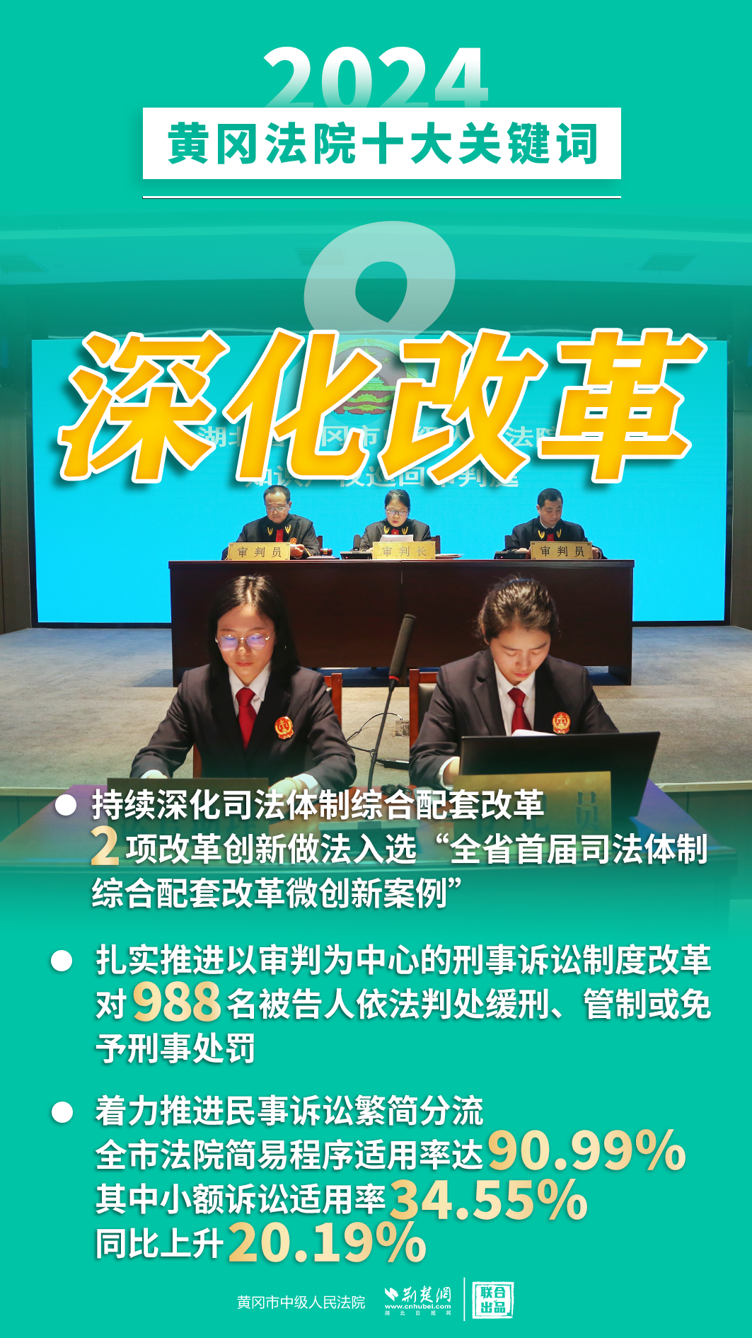2024年,黃岡法院深入學習貫徹黨的二十屆三中全會精神,認真落實黨中央決策部署和省委、市委工作要求,忠誠履職、擔當作為,著力護航經(jīng)濟高質量發(fā)展、助推社會高效能治理、守護群眾高品質生活,各項工作取得新發(fā)展、實現(xiàn)新突破。